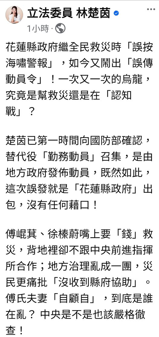 花蓮縣政府要對你提告了!妳還不道歉嗎?