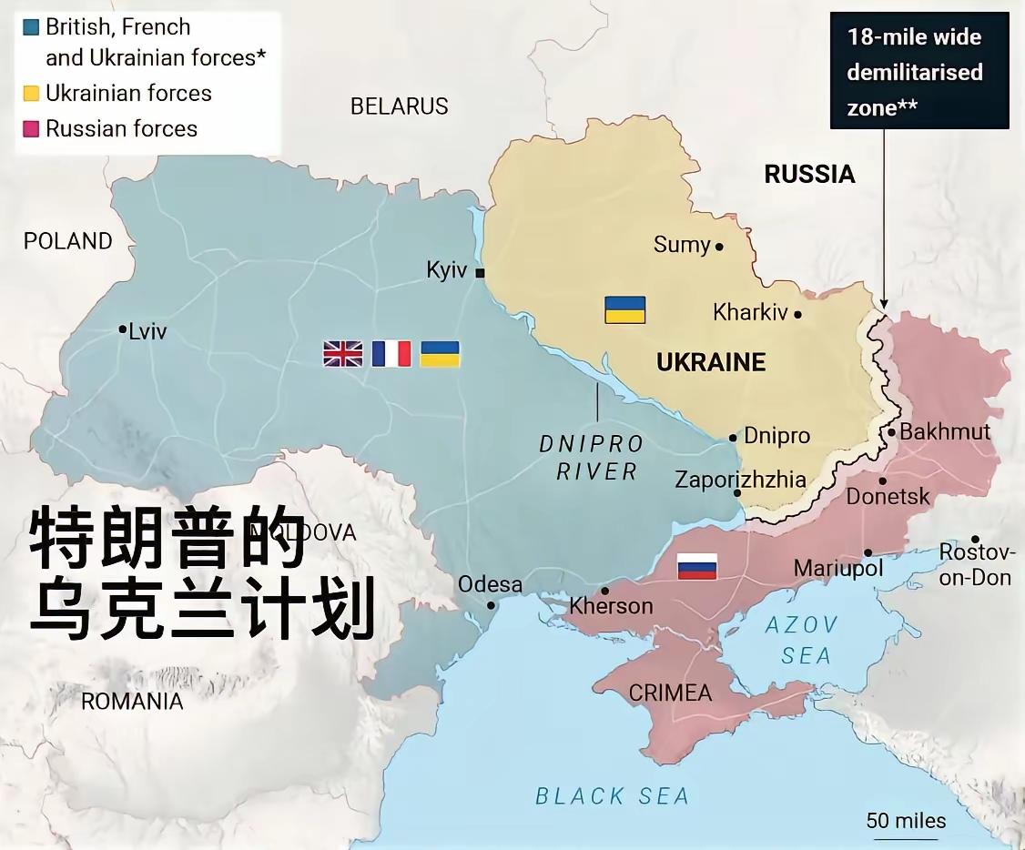 特朗普的乌克兰方案,计划将乌克兰一分为三。泽连斯基要欲哭无泪了,欧盟可能看透美国的虚弱了。特朗普派特使到俄罗斯谈。根据美国特使的和平计划,乌克兰将被分为三个区域,以此达到一个“和平”的状态。