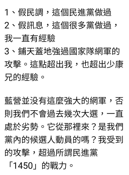 我們也不要睜眼說瞎話,藍營並沒有幾次大選都居於劣勢,9合1我們贏了!立委選舉我們也贏了!