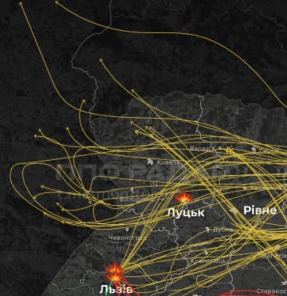乌克兰媒体“基辅内幕”(Kyiv Insider)10日在X平台发布了两张来自战争数据追踪平台monitor war的图片,显示了9日晚“俄罗斯对乌克兰和波兰的攻击规模”。从图片中可以看到,俄罗斯对乌克兰发动大规模无人机袭击,还有不少无人机进入了波兰境内。