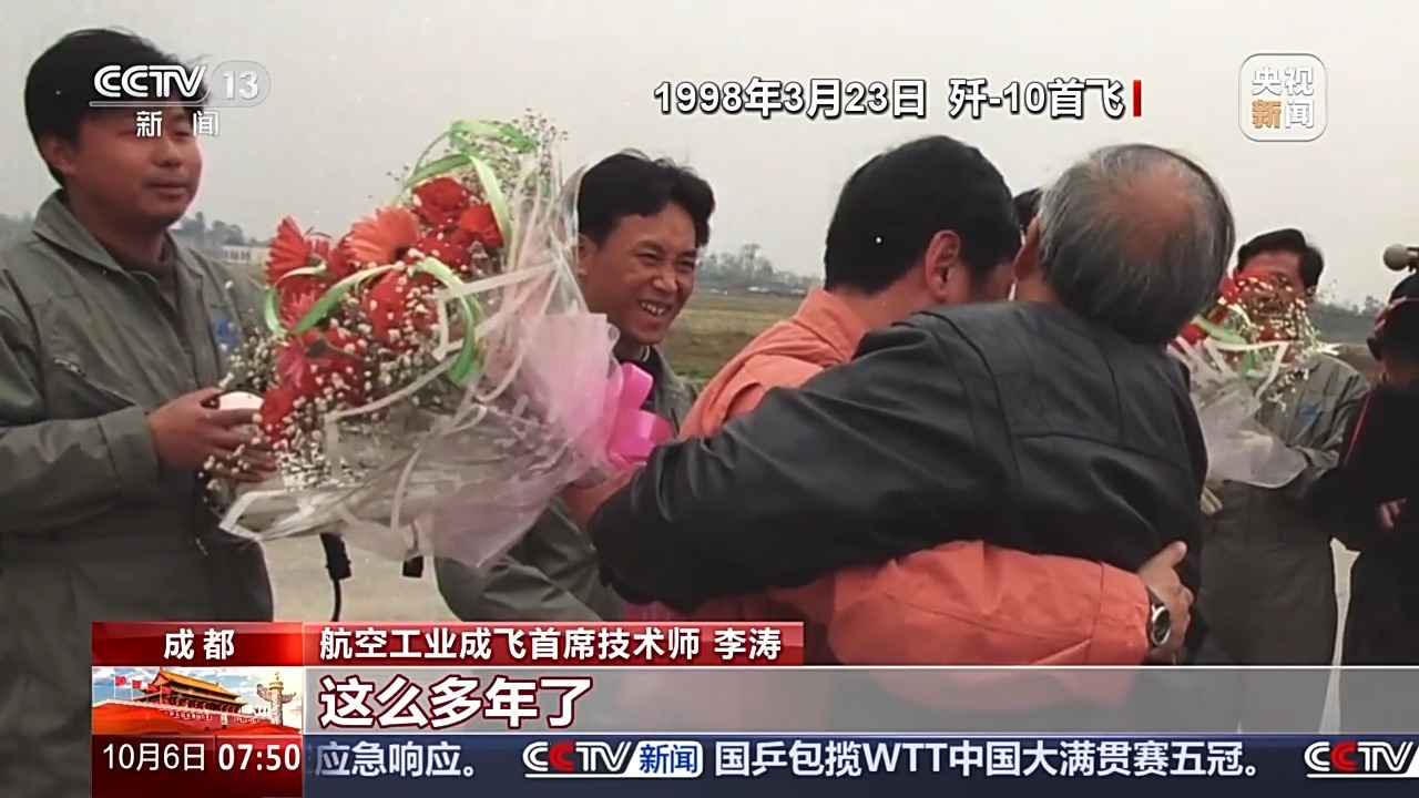 航空工业成飞首席技术师 李涛:下飞机以后,宋文骢和薛炽寿两个总师就过来了。他们热泪盈眶,旁边站了一圈人,大家也热泪盈眶,不停鼓掌。
