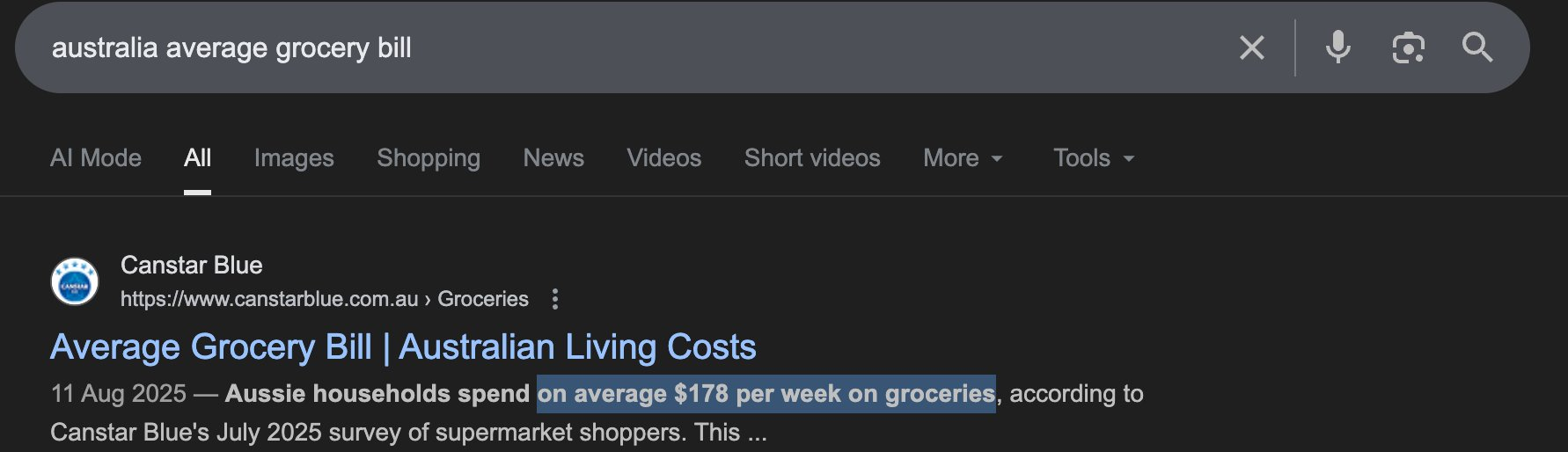 买菜平均花费是每周 178 澳币